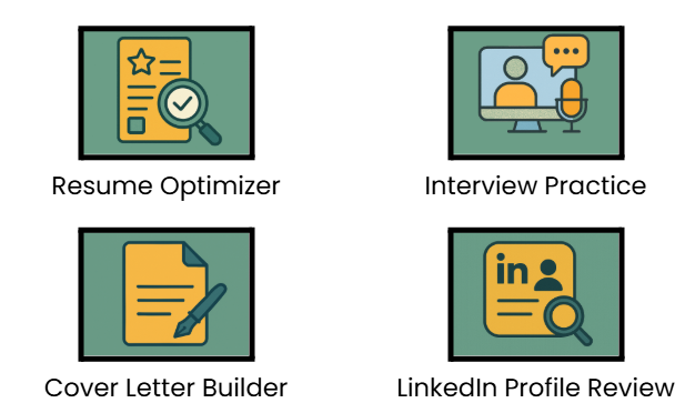 - Create cover letters and a recruiter-ready LinkedIn profile